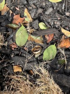 I got a text from David, who had been playing ball with his dog in the yard. After an errant throw, David went to a bush to retrieve the ball and after getting the ball, he realized that his gold wedding ring was gone. He knew where he was when he realized it was gone, but didn’t know if the ball-throwing or the rooting around in the bush had caused the ring to come off. He’d searched the area himself, but had not been able to find the ring. The yard was covered in thick grass and the non-grassy area (under the bushes) was covered in black shredded rubber mulch. He showed me the bush in question and also showed me where he had been standing for his throws to the dog.