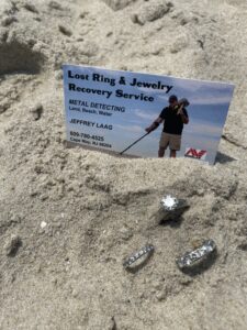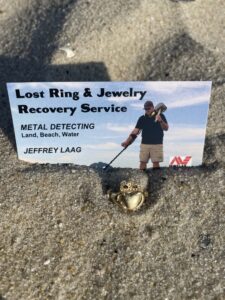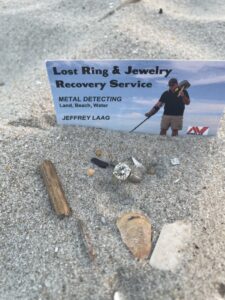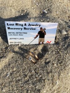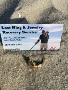 Lost a ring? Call or text NOW! 609-780-4525 Received a call from Katie this afternoon. She explained that her platinum diamond ring “flew off” her finger while on the beach late last evening. After “another” ring finder wasnt available she reached out to me. Took the short 5 minute ride over from my year round, full time residence, and recovered Katies ring about 5 minutes after arriving on the beach, much to her relief. Another happy client!