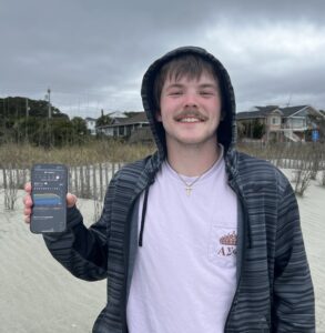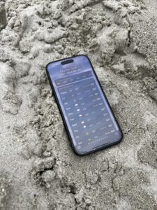 When I got to the beach access, I called Hunter to say I was there. He said he was about 10 minutes away but told me to go to the house on the left and somebody there could direct me to the location. Spencer and Scott had just driven in the driveway. We introduced ourselves and they showed me down to the beach and the area where they said the phone was pinging. I turned on the Equinox 800, took about 3-5 steps and got a booming signal with a VDI (visual display indicator) showing numbers jumping between 28-32. Bingo! I dug a shallow scoop of sand and uncovered the cell phone. The search lasted no more than 10 seconds. As we’re standing there, Hunter and Jacob walked out on the beach. This is when I learned the phone belonged to Jacob. He turned on the phone and said, “It works!” I could see the relief on Jacob’s face when he got his phone back and it worked.