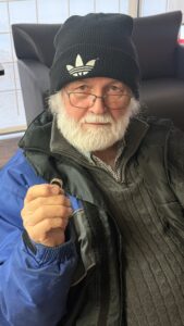 Next, I initiated a search of the parking lot adjacent to the dumpster, approximately 6 feet away. I detected a Very shallow Signal (VDI) of 70 on my detector and with the only signal in the area, buried in about 2” of packed snow I found her ring.