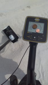 Billy met me when I arrived and took me to the area of the loss. His family including Karen was visiting from Wisconsin, and were scheduled to leave the next day, so this loss created a high level of tension. The ring had been Karen’s great grandmother’s, and had a deep special meaning for her. They showed me what had happened, the ring had flown off of her finger while she was brushing the sand off of her clothes. I began my search and found bottle caps, foil, some coins, but no ring. I then began searching in the other direction, and a little further out, when I got a good strong signal. I put the scoop in, pulled it up and shook out the sand. When I looked in, expecting to see the diamond ring, I saw 2 rings, and was a little puzzled. Before I brought them out, I asked if I was looking for 1 or 2 rings, they then said that 2 were lost, but they were really concerned about the diamond ring. That is when I pulled them both out of the scoop to everyone’s surprise. Karen had an immediate flood of emotion when she saw the ring her great grandmother had worn, and came and gave me a big hug. I know it was bothering her to think she might have to go back to Wisconsin leaving this representation of her family behind. Boy it is great to see joy restored!