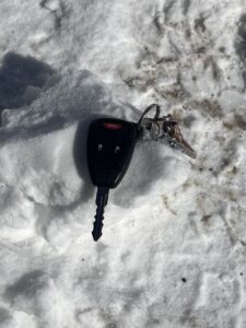 Received a text from Dylan about him having lost his key fob, and other important keys, while shovelling a driveway couple days ago (he is looking after his friend’s property while they are away on vacation). After shovelling about four feet wide along the driveway, he noticed that the key fob was missing from his jacket. After looking extensively for it with no luck, Dylan’s brother showed up with spare key fob so he could at least drive back home. He went back the next day to look for it again, with no luck, and finish shovelling the rest of the driveway. I met up with him today and after listening to what had happened, he was sure the keys would be on the left end side of the driveway, in the snow bank. Long story short, keys ended up being found in the snow bank on the right side of the driveway. Another happy ending, considering how expensive it is to replace key fobs and multiple other keys. Life is good!