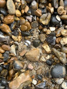 Marguerite then told me that she and her husband, Chris were staying at The Nonantum Resort and had taken the Nonamtum ‘s shuttle bus, over to Gooch’s Beach, enjoying the day, at the private beach area of Gooch’s Beach. Marguerite had taken her three rings off, to apply lotion and had placed the rings, in her lap, intending to put them back on. As she was sitting there, at the high tide mark, a very large wave rushed up at everyone, on the beach. She was startled by the wave and immediately jumped up, as the wave rolled past her. Her three very special rings landed in the surf, as the wave rolled past. When the wave retreated, she and Chris started looking for the rings. Even other beach goers were helping to look, for the now lost rings. Someone gave Chris a sifter and he would sift the sand, from the area, but couldn’t find the rings. They were convinced the rings had been pulled down, towards the water, as the wave retreated. I told Marguerite that it is my experience that the rings would be very close, to where she lost them and I would leave immediately and meet her and Chris, at Gooch’s Beach. Marguerite then told me that Chris had placed a log right where they had been sitting, so they would remember, where they had been. Perfect and brilliant. As a side note, the original name of Gooch’s Beach, was Boothby’s Beach, back in the early 1700’s. Could this be a good omen?