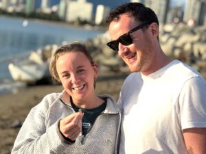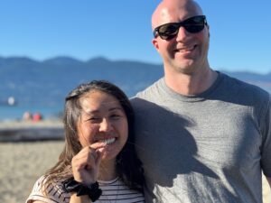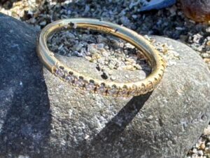 As I was getting my gear on I saw a fellow metal detectorist friend , I have know for years, approaching me. Ed, who runs a YouTube channel called Maine Beach Metal Detecting. I actually subscribed to his channel and love watching his video’s, good stuff. You should check his channel and subscribe also. Anyways, back to the story. Ed had seen a Facebook Post about the lost ring and contacted Colin. Colin told him that he already had me coming down, to search at low tide. Ed decided to come down and meet me to see if he could assist. I asked Ed if he wouldn’t mind searching the wet sand, performing a north and south grid search, following the tide out. I would go into the water and perform a north and south grid search, using landmarks, along the shore to keep me in a straight line. As I entered the water, I immediately felt the water’s freezing temperature. This was much colder that the water recovery I had performed, in Ocean Park Beach Maine, just two days earlier. To compound the matter, the sky was cloudy and I wasn’t getting any of the warmth, that the sun provided, just two days prior. As I was freezing to death, on this search, I was finding very, very few non ferrous targets. There was much more iron targets being detected but I just went over those. I was chest deep in the ocean and working my way further out. I figured I had been in the water, going back and forth for approximately 45 minutes to an hour and I also knew that the tide wouldn’t be going out much further. I was already up to my chest/arm pit area, deep in the water. I really couldn’t go out any further and feel safe about it. The waves were just rolling in and thankfully, weren’t breaking/crashing on me. I motioned to Cheryl to come to the waters edge. I wanted to know what time it was and try to figure out how much time I had left, before the tide started to come in. Cheryl said it was 12:30pm, leaving me with just under an hour and a half, before the tide, turned against me. Because of the waves, I knew I could probably do only one more grid line, to the north, before I had to stop the water search. As Cheryl headed back to the comforts of her chair, I took a half step to my right, into the slightly deeper and cold water. After approximately 5-7 minutes of the last grid line, to the north, I received a very loud low tone, on my Minelab Excalibur. This was absolutely the best sounding target of the day. Now the hard part. I needed to watch for the rolling waves, while feeling the undercurrent, rushing past my legs. I placed my right foot on the target to mark the location, I had to dig. I took my long handle sand scoop and plunged it into the sand. I brought up a scoop full of sand, shook the scoop, in the water, to remove the sand. Once the sand was gone, I looked into the scoop and absolutely nothing but some rocks and a sand dollar. I dumped those back into the ocean and ran my detector, back over the hole to relocate the target. I located the target and it was still in the dug hole. I took another scoop of sand, from the hole and shook the sand out. I looked into the scoop and there were more rocks and a big shiny GOLD RING, staring back at me. I was very excited to have found Colin’s ring and I immediately yelled to everyone that I had found the ring. I then lifted the ring up in the air in a celebratory manner, so everyone could see the wedding ring. I then saw Colin, his wife, Cheryl and Ed, making their way to the waters edge, as I made my way to shore. I could see the excitement and smiles on everyone’s faces as I exited the water. Colin and his wife were just so relieved and happy to have had the ring located and back on Colin’s finger, where it belongs. I was also smiling ear to ear. I can’t explain the joy I get of seeing the faces of my clients, when they get their item back.