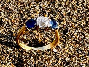 So today my wife Cheryl and I arrived at York Harbor Inn and I checked in with the front desk of the York Harbor Inn, to be sure I could park, on their property. They actually knew of me, The Ring Finders of Maine and were happy to let me park there, while searching for their guests wedding ring. As I was leaving the reception area, Colin and his wife arrived. They immediately took Cheryl and I down to the beach, where they were the previous day. As we walked to the beach Colin mentioned the wedding ring was just a little loose on his finger. I asked how long they had been married and they told me that today was their 1 week Anniversary, WAIT, WHAT? Newlyweds? That explains a lot. I have found many, many rings for people who have been married for less than a year. Their rings just aren’t quite sized properly. OK then, let’s get down to work. I really want to find this newlyweds wedding ring.