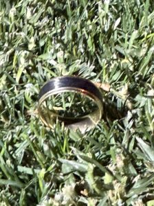 His ring showed up using the metal detector. It was actually on the surface of the grass and could have been a visual find. Sometimes the position of the sun in the sky helps to reveal a lost ring. It’s amazing that the ring was not findable while Zack searching that afternoon. It was only a 40 ’x 40’ search area. ??