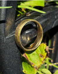 Lost his 18k Gold wedding band in the yard.