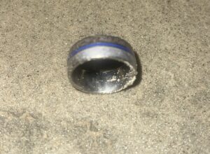 I received a call from John Hughes to help find a men’s ring at Carlsbad beach.He had already scanned over the 12X12 area multiple times with 2 different metal detectors but was not able to find it due to this type of ring being what’s known as a “Broken signal.” It is a chain linked style ring which can act as a non-conductive metal that disables most type of detectors from picking up the signal.
