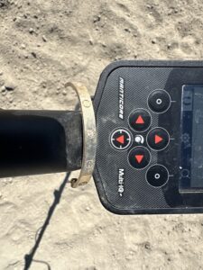 On Labor Day evening, Cheryl contacted Dave, distraught because her husband lost his wedding ring while boogie boarding at Marina Beach Park in Ventura. The ring, loose from frequent beach trips, slipped off during a tumble in the surf. Cheryl usually safeguarded it, but this time, both were caught off guard by a big wave.Since the ring was lost in the surf, Dave planned a search during the low tide at 2:45 AM Friday to avoid the heavy shorebreak. Marina Park’s bowl-shaped beach meant shifting sands could bury the ring deeper, so timing was critical. Dave promised to pray for its safe return and began gridding the beach at low tide.Working alone in the early hours, Dave split the beach into sections, focusing on the left side where Cheryl’s husband was boogie boarding. After 35 minutes with no targets, he moved to the north side. On his third pass, a pull-tab tone led to a men’s wedding band in his CKG scoop. Unsure if it was the right ring, Dave continued searching until 3:45 AM, finding no other targets. He sent a photo to Cheryl, went home to rest, and at 7:00 AM, Cheryl confirmed with joy—it was her husband’s ring!