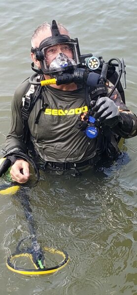 Months passed. Unsure whether recovery was even feasible, Tim contacted a local metal detecting club in the Galveston area, who referred him to Houston Metal Detecting Services, recognizing the technical difficulty of such a recovery: deep open water, zero visibility, and a silty bottom.